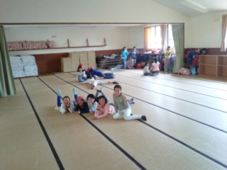野外炊事までの休憩時間に自由遊びをしました。