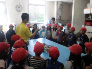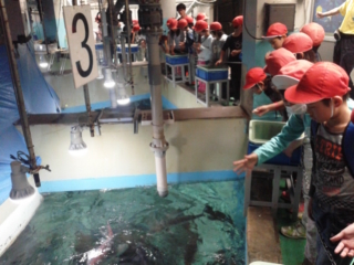 クラスごとにペンギンタッチと水槽の魚への餌やりをしました。