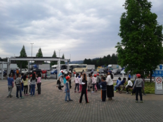 サービスエリアで最後のトイレ休憩をしました。京都まであと少し。