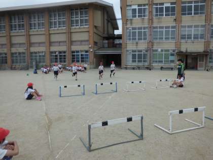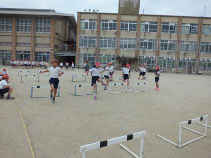 運動会でハードル走にも挑戦する4年生。