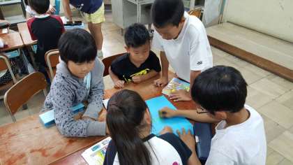 第一回のたてわり活動が始まりました。1年生を迎えに行き,初顔合せをしました。みんな初めは緊張の面持ちでしたが,自己紹介が終わり残った時間でゲームを始めたころには,笑顔で打ち解けた様子でした。
