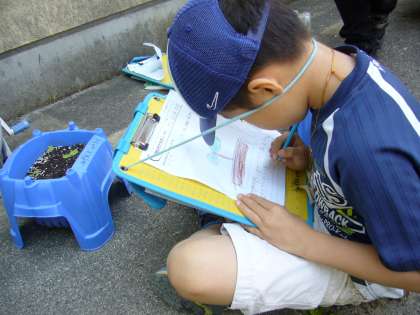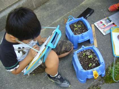 子葉を触ってみる子や長さを測ってみる子,細かく観察できました。