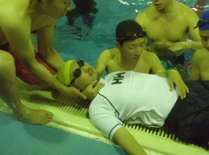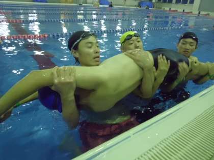 水中での抱きかかえ方,プールサイドへの安全な上げ方など