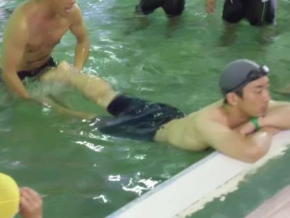実際に泳いでみると,補助の仕方で