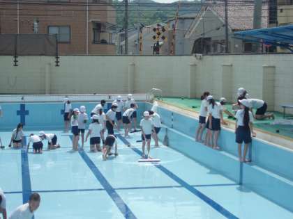 最初プールに入った時,「え〜〜っ!きったな〜〜〜」