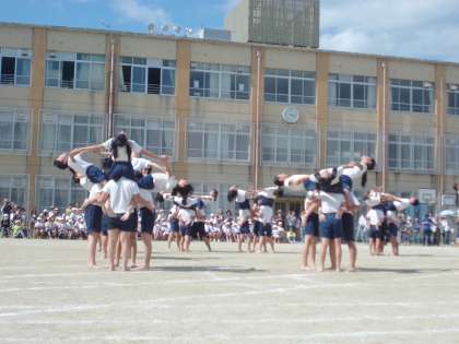 大きい技になればなるほど,友達との呼吸が大切になっていきます。心をひとつに,技を決めていきます。支えてくれる友達への感謝をもちつつ・・・。