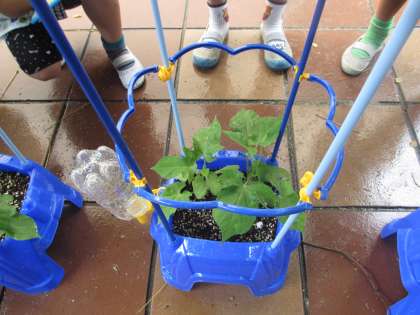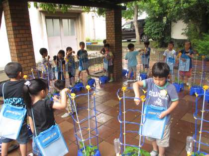 支柱を立てた後,葉っぱや茎の様子を詳しく観察しました。