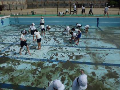 「プール清掃プロジェクト」P.S.Pを合言葉に,たった2時間でとてもきれいな状態にしてくれました!