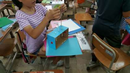 図工では,引き続き,クランクのしくみを使って動く作品を作っています。先週は動きの特徴をよく観察して,アイデアスケッチをかいてから作品作りに取り掛かりました。今週は作品作りも大分進んできました。楽しい作品ができそうです。