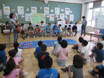 ひまわり学級のお友達にルールの説明をしてもらったり,すくった金魚の重さをはかってもらったりして金魚すくいを楽しみながら,ひまわり学級のお友達と友情を深めることができました。