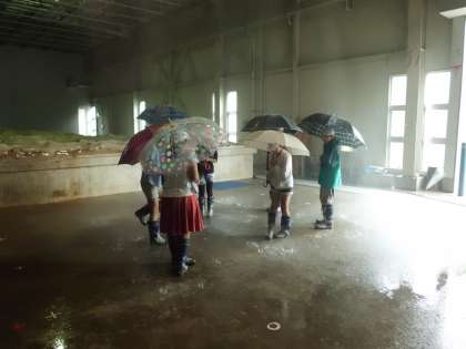 後半は200ミリの大雨体験や,地下へ雨水が流れ込んできたときの歩行体験など,直接自分の目や体で体験することができました。