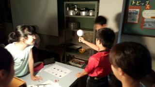 理科では「月と太陽」について学習しています。天体の不思議を学ぶ楽しい学習です。他の単元と違って,実物で確認…ということができないので,ボールを月と見立てて,太陽のかわりのライトを使って地球からの月の見え方を確かめる実験をしました。
