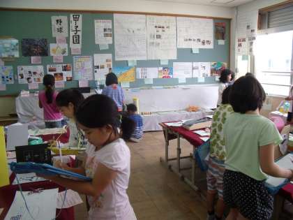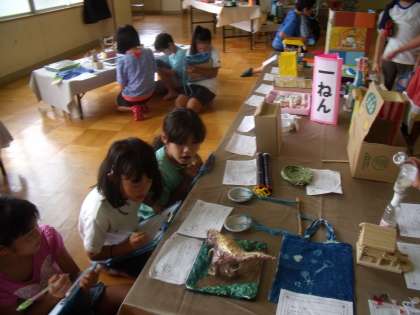子どもたちは,他の学年の人たちの自由工作や自由研究を一生懸命鑑賞していました。