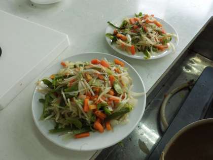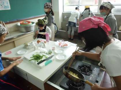 6年生は先日,調理実習を行いました。今回の料理はいり卵と野菜炒めです。火加減や炒める時間などを慎重に考えながら調理を進めていました。どの班も準備から調理,片付けまでを効率よく分担して行っていて,とても感心しました。