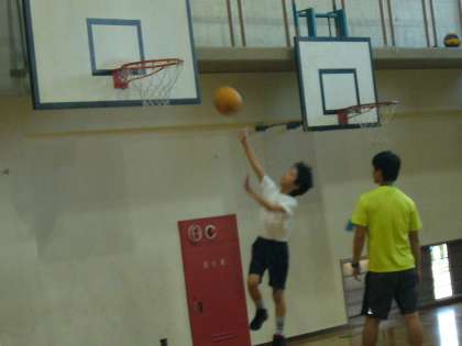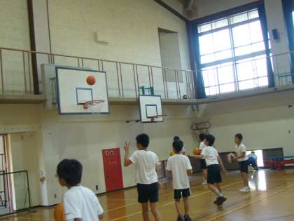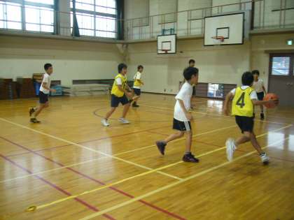 バスケットボール部では,レイアップやフリースローというシュート練習,練習試合などをしています。