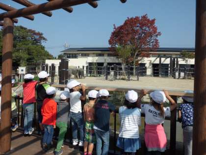 みんなで動物を見ながらまわりました。名前は聞いたことがあるけれど,実際に見るのは初めての動物もいっぱいいたようです。動物たちの可愛らしい姿を見て,笑顔の子どもたちです。