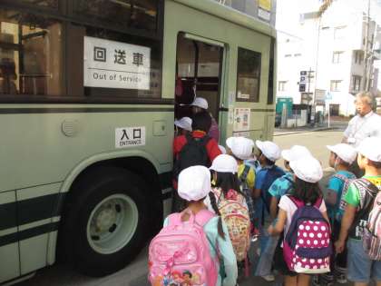 行きは臨時バスに乗りました。みんなバスの中でもドキドキワクワク・・・。