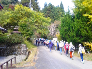 登り口から山に入りました。最初はなだらかな坂なのでまだまだ元気です。
