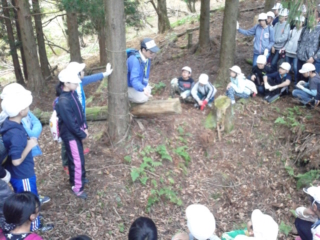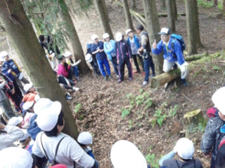自然にできた穴を観察。「ぬた場」というらしいです。雨が降ると動物たちのお風呂になるそうです。
