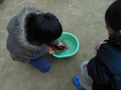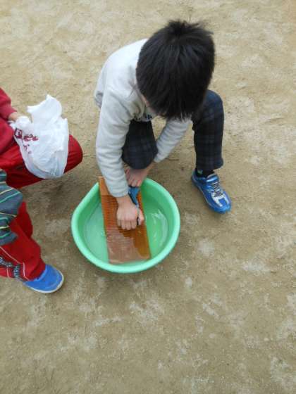 洗濯板を使って