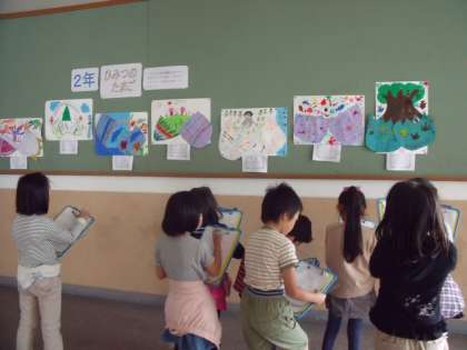 子どもたちは,とても楽しそうに友だちの生み出したたまごの鑑賞をしていました。