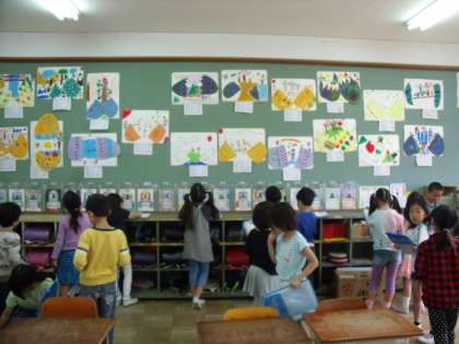 図工でひみつのたまごを描いた子どもたち。
