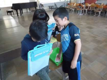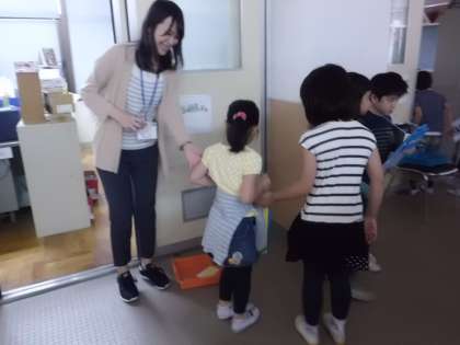 初めて見る事務室や校長室では先生方ともお話することができたようです。校長先生ともお話できてうれしそうでした。
