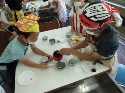1組では家庭科の学習で,お茶の入れ方について学びました。