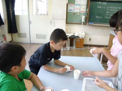 「空気」や「温度」との関係について「人間も呼吸するから植物も空気を吸うと思う。」や,「あたたかい時の方が植物がよく育つ。」等,今までの経験からたくさん予想をたてることができました。