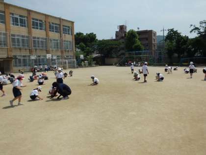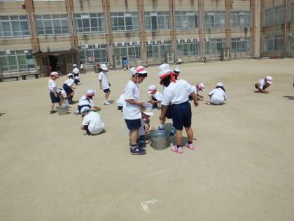 全校でゴミゼロ活動をしました。1年生は,運動場のトラック内の小石拾いをがんばりました。暑い中での活動でしたが,水分補給をしながら,みんな一生懸命に小石を見つけて拾ってくれました。