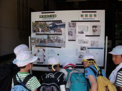 平安騎馬隊に関するポスターや資料を読んでいる子もいました。