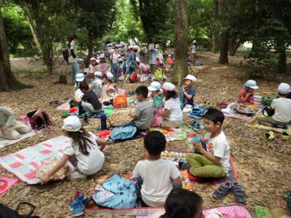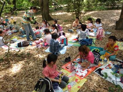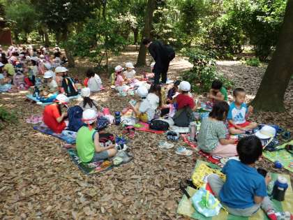 植物の鑑賞の後は,お待ちかねのお弁当タイム。「どんなお弁当かな。」と楽しみにしている子ども達は,お弁当箱を開けると「先生,見て見て!」と大喜びでお弁当を見せてくれました。