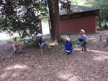 昼食後には,広場で遊びタイムをとりました。おにごっこをしたり,日陰で休んだり・・・。
