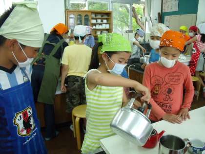 1組に引き続き,2組も家庭科の時間にお茶パーティーをしました。グループで協力して,楽しいだんらんの時間になりました。