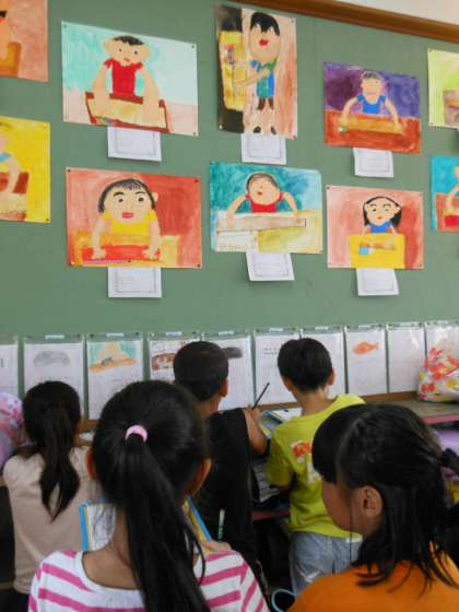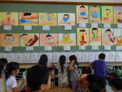 子どもたちは,友達の作品の良い所や真似してみたいところをたくさん見つけました。