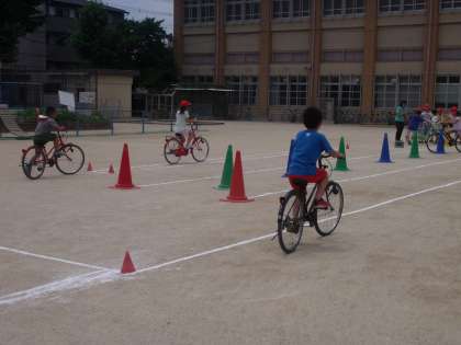 安全な自転車の乗り方を,実際に自転車に乗って確かめました。