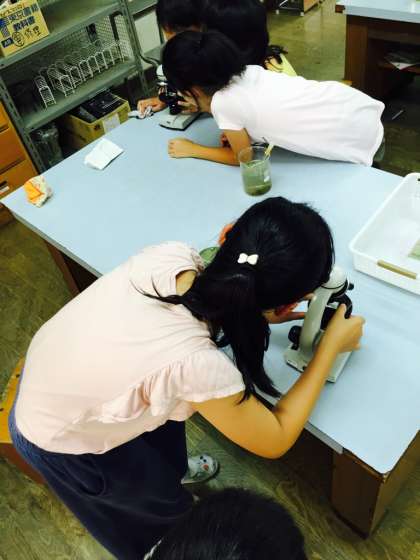 観察池にいる微生物を顕微鏡で観察しました。
