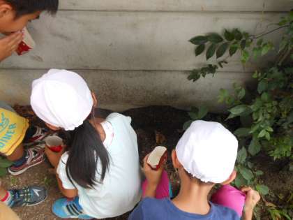 「今日は,暑いからだんご虫が見つからないよ〜。」