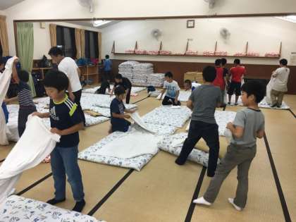 歯を磨いて,布団を敷きます。