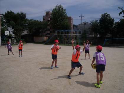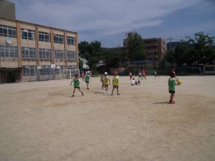 まだルールに慣れている最中ですが,シュートやキャッチなどを一生懸命練習して頑張っています。