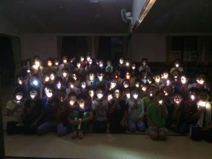 夜の道をグループごとに歩きました。