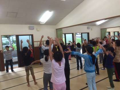 朝の体操をして体を起こします。