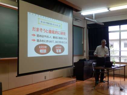 ゲストティーチャーをお招きして,携帯電話の良いところや,危険なところを教えていただきました。