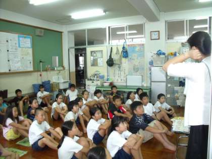 はじめに,養護の先生に「正しい怪我の手当ての仕方」を教えていただきました。