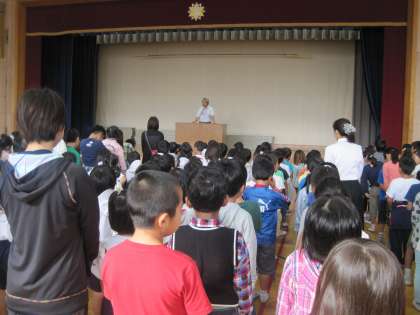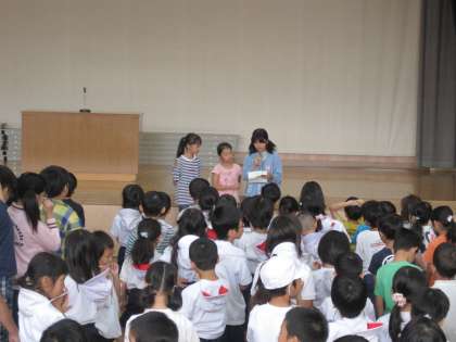 児童朝会では後期の代表委員の紹介や