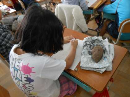 たくさん獲れたので,一人一個ずつ,さつまいもを観察しました。