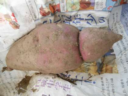「ぼくのさつまいもは,にんにくみたいな形だよ。」
