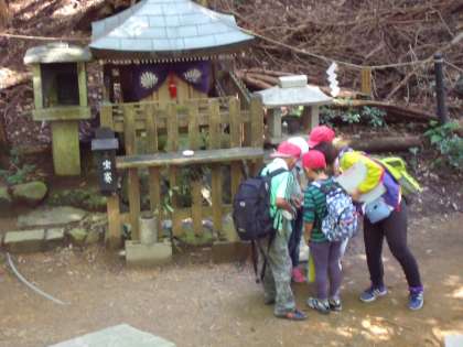 鞍馬山の魔王殿についた後は,グループごとに分かれてウォークラリーをしました。