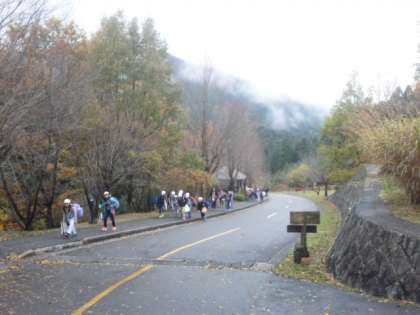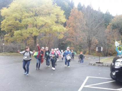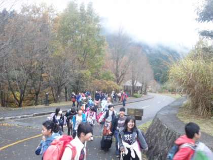 気温は現在16度くらいです。みんな元気にバスを降りて坂を上がってきました。