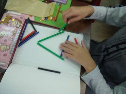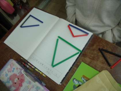 今日は,ストローを使っていろいろな大きさの三角形を作りました。